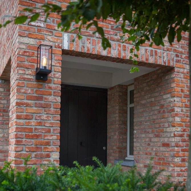 Lutec Flair E27 Lantern Outdoor Wall Light with PIR Sensor - Black